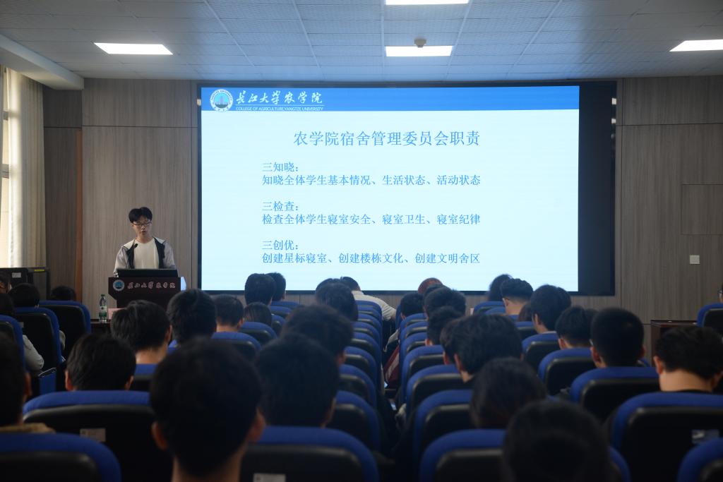 首先,由宿委会副主任刘佳豪进行发言。他从认识宿委会,宿委会成员介绍,宿委会工作介绍 ,77779193永利官网提出工作要求,安全委员的职责,对安全委员的工作要求这六方面展开叙述。明确了寝室建设细则,例如“三知晓、三检查、三创优”并对学生在寝生活提出具体要求。