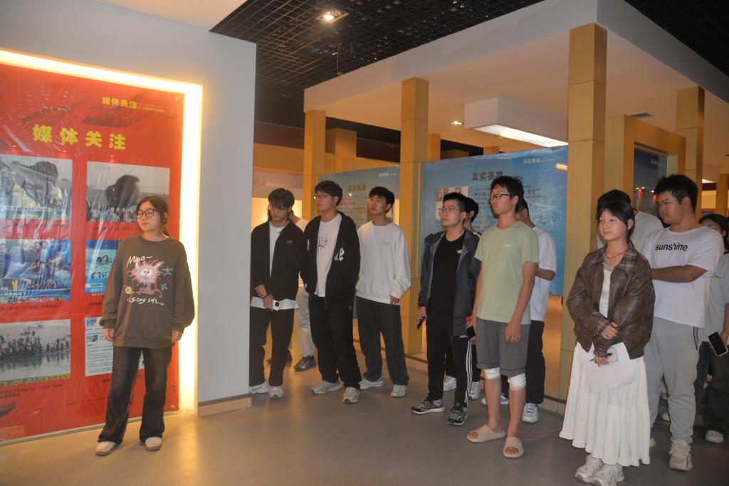 展示台上摆放着的英雄遗物、墙壁上满挂的慰问照片,简洁的布置在精神上震撼着每一位同学,深感敬佩和惋惜。大家纷纷表示愿意将这种义无反顾、见义勇为的英雄精神传承并发扬光大。