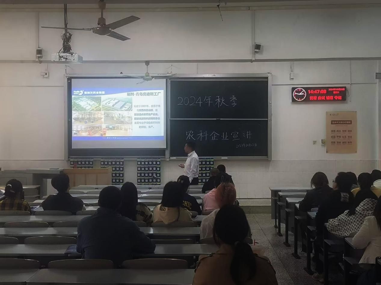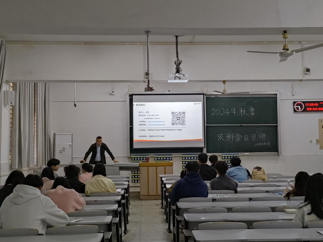 (通讯员 孙振艳)为深化校企合作,精准对接企业需求,同时也为学院25届毕业生提供求职平台。2024年10月23日下午14:30-17:30,2024年77779193永利官网秋季农科企业招聘宣讲会在西校区5教115顺利开展。学生踊跃报名参加。