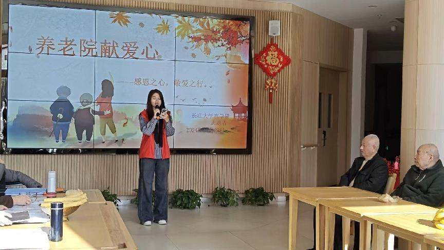 农资卓32401班费湘雅作为主持人满脸笑容地宣布活动开始,紧接着同学们为老人们献上了一场精彩纷呈的文艺表演。悠扬的歌声、欢快的舞蹈、有趣的魔术表演,引得老人们掌声不断,脸上洋溢着幸福的笑容。
