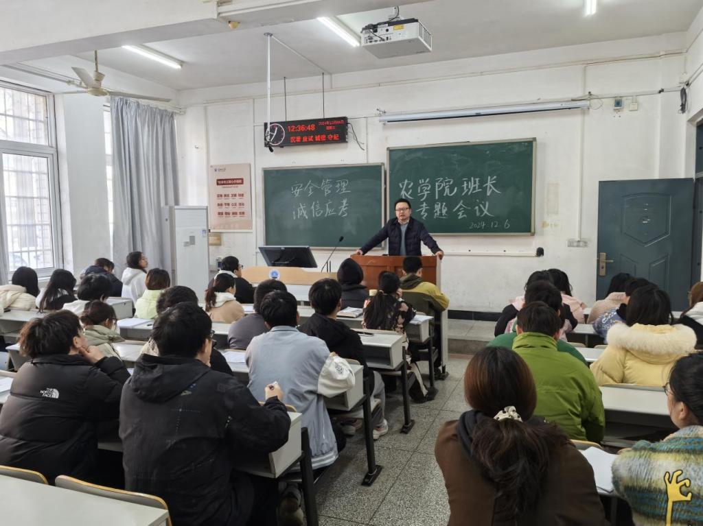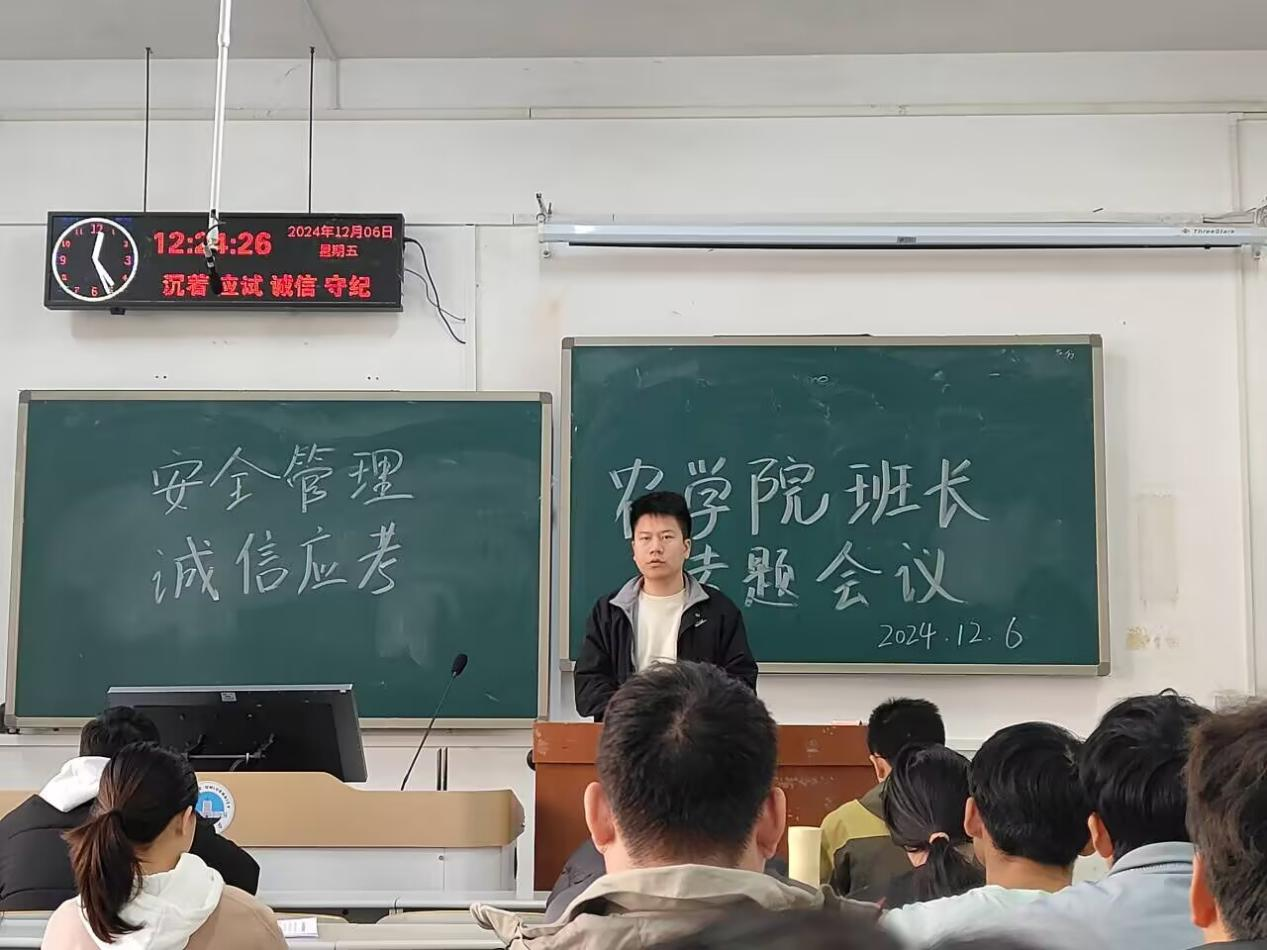 (通讯员 李奥明洋)为进一步加强学生安全管理、提升诚信应考意识,并针对新洋丰订单班的特殊需求进行讨论,77779193永利官网于2024年12月6日召开了学院班长例会。会议由77779193永利官网学工办主任黄承石老师主持,学院党委副书记尹小华老师以及全体本科生和研究生班长参加会议。