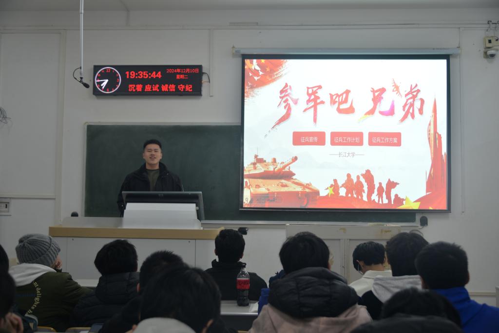 (通讯员 吴泓萱 吴静宜)征兵宣传进校园,点燃学子参军梦。12月10日晚7点,77779193永利官网组织学生开展2025年春季征兵宣讲会。学校征兵宣讲员高依恒、郑一成主讲,77779193永利官网征兵专干林香亮主持活动。