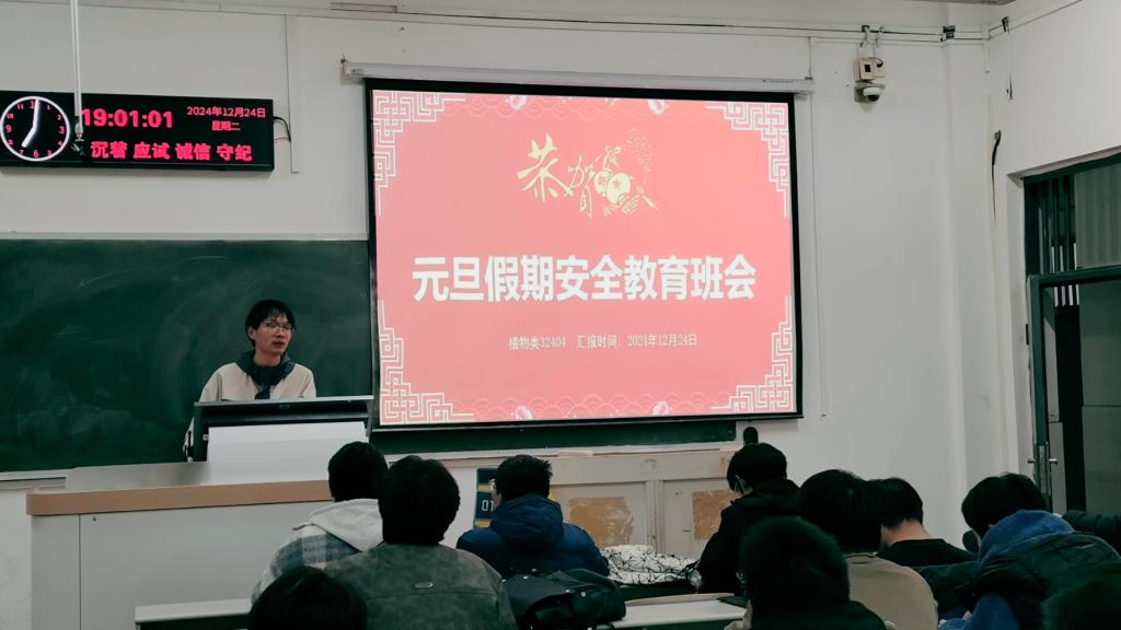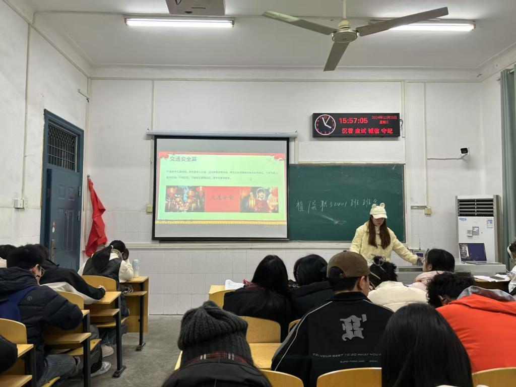 (通讯员 张顺皓)近日,为深入贯彻高校安全管理精神,进一步强化学生安全意识,我院积极响应学校号召,于12月30日前统一部署,全面展开了一系列安全教育班会,聚焦元旦期间防诈骗、交通、消防、食品、财产以及人身安全等多个维度,通过生动案例警示、互动交流等方式,构建全方位立体化的安全防护网,为学子们的平安校园生活保驾护航。