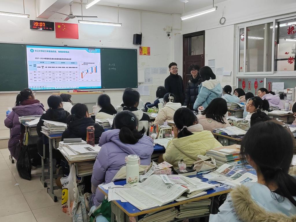回到母校后,刘芸她们走进高三班级,以PPT演示和现场讲解的方式,向学弟学妹们介绍了各自大学的基本情况,让他们对大学有了更直观的认识。在专业介绍环节,她们结合自身所学专业,详细阐述了课程设置、就业前景和发展方向,解答了他们对专业选择的疑惑。分享高中学习经验时,刘芸结合自身经历,介绍了高效的学习方法,还分享了应对高考压力的心理调适方法,鼓励他们保持积极心态,合理安排作息时间。在互动交流环节,同学们积极提问,我们都一耐心解答。