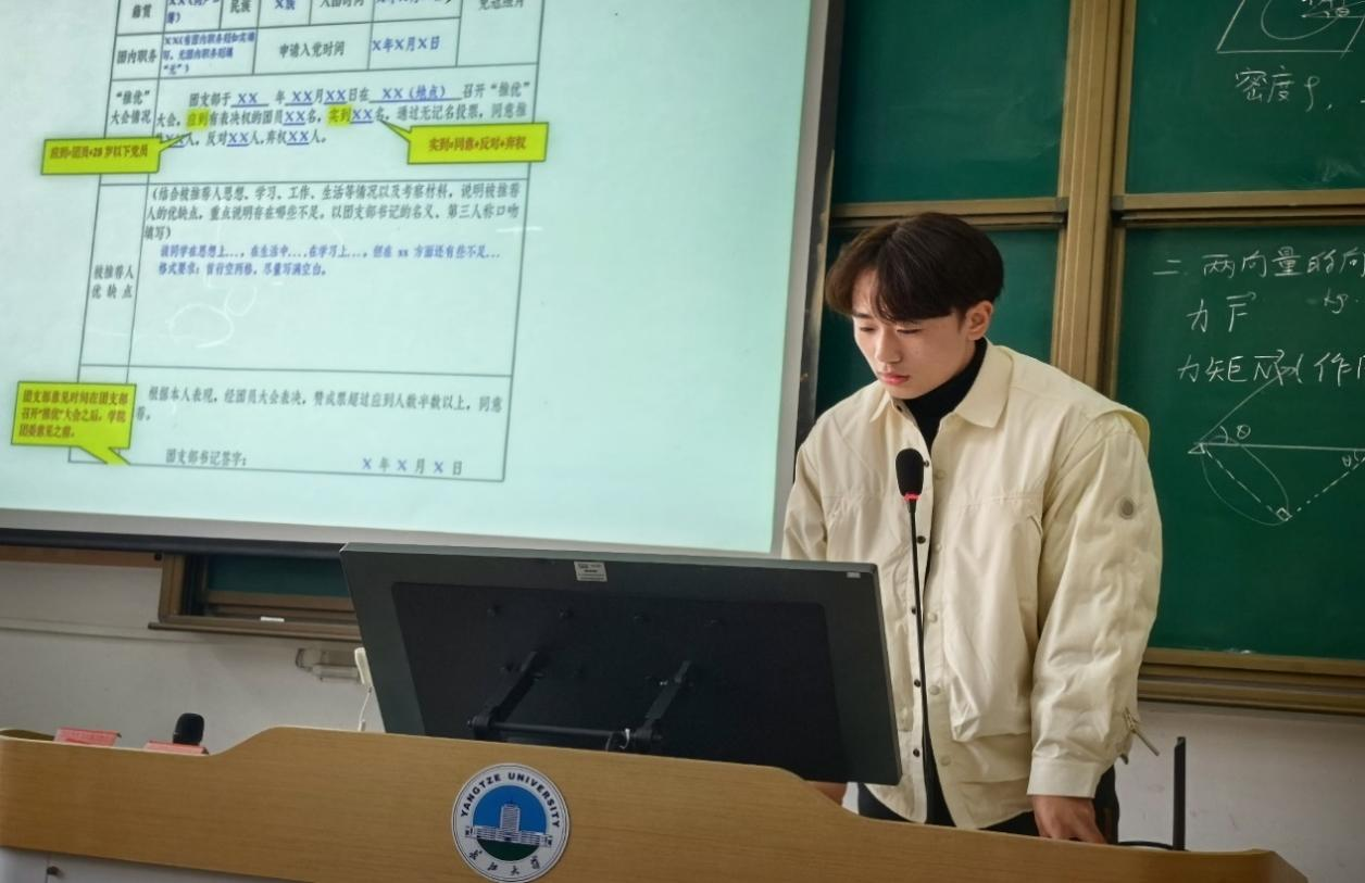 在付雪娇老师的讲解后,组织部部长蒋云霖为参会人员补充讲解了共青团77779193永利官网委员会推荐入党积极分子申请表的填写注意事项。他强调,申请表要如实填写,重点突出个人事迹,切忌夸大其词。同时,申请人还需要提供相关证明材料,如获奖证书、社会实践证明等,以佐证自己的先进事迹。