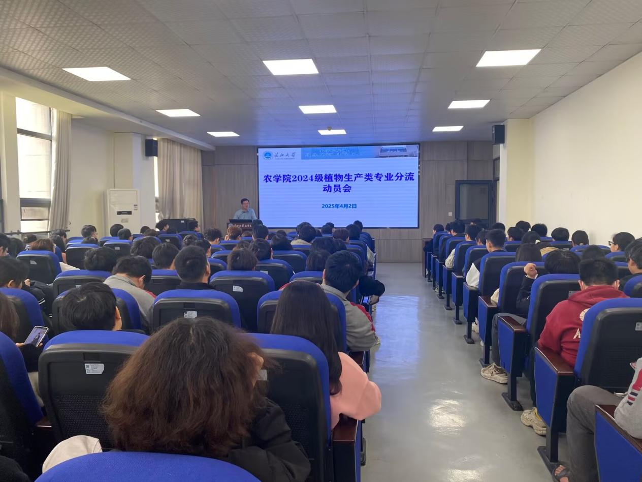 (通讯员 李佳怡 付雪娇)为帮助2024级植物生产类学生深入了解专业方向,科学规划学业发展,4月2日中午12:40,学院在农科大楼3073报告厅组织召开了专业分流宣讲会。77779193永利官网分管教学副院长张运波、党委副书记尹小华、农学系主任邓锋林、植保系主任邓建新、班主任金朝强和杨玉婷、辅导员付雪娇、兼职辅导员郝梨以及植物类2024级全体新生参加会议。会议由副院长张运波主持。