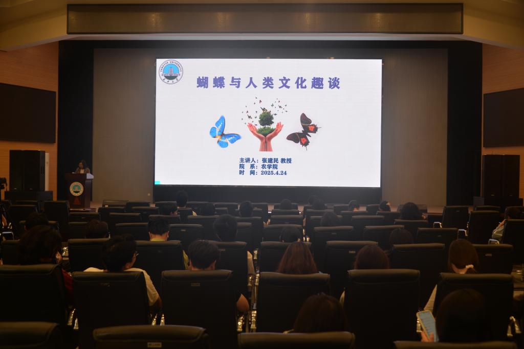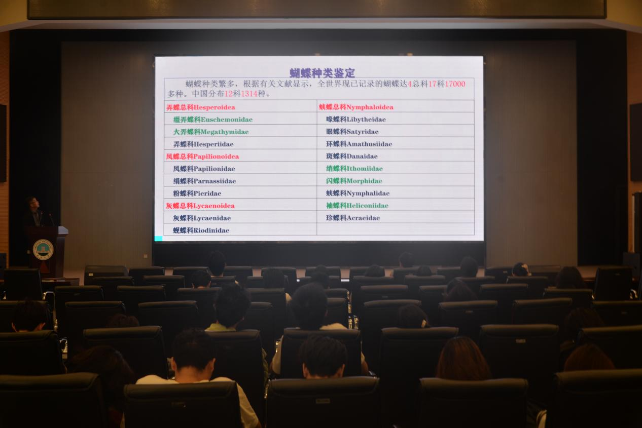 张建民教授凭借深厚学术底蕴与丰富科研经验,引领同学们踏入蝴蝶的奇妙世界。讲座中,他借助生动实例与精美图片,深入浅出地剖析蝴蝶从卵、幼虫、蛹到成虫的蜕变历程,揭示其生态习性。提及全球超1.8万种蝴蝶分布广泛,他以光明女神蝶、金斑喙凤蝶为例,强调金斑喙凤蝶科研价值。