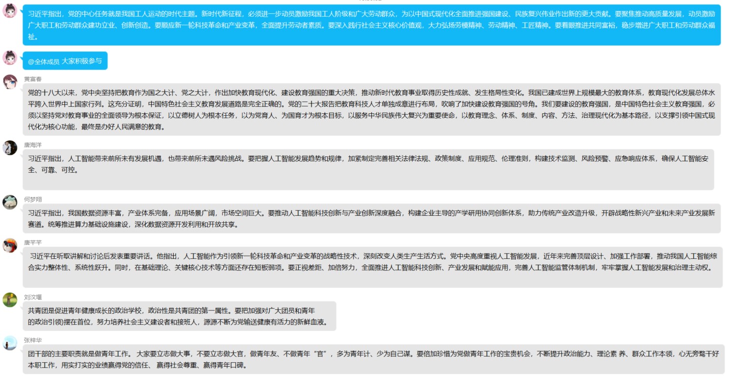 学习内容主要围绕习近平总书记最新重要论述为指引,以人工智能发展、劳动精神传承、科技创新战略、青年责任担当及教育强国建设五大主题展开,为研究生点亮思想明灯。习近平总书记在中共中央政治局集体学习时强调,“要坚持自立自强,突出应用导向,推动人工智能健康有序发展”。这一主题引导同学们要关注科技创新领域的前沿动态与重要战略思想,为投身相关科研工作奠定基础。在《求是》杂志发表的《激励新时代青年在中国式现代化建设中挺膺担当》一文中,习近平总书记寄语青年“要勇当先锋队、突击队”。结合学习内容,研究生们围绕“如何将个人成长融入乡村振兴”展开研讨交流。