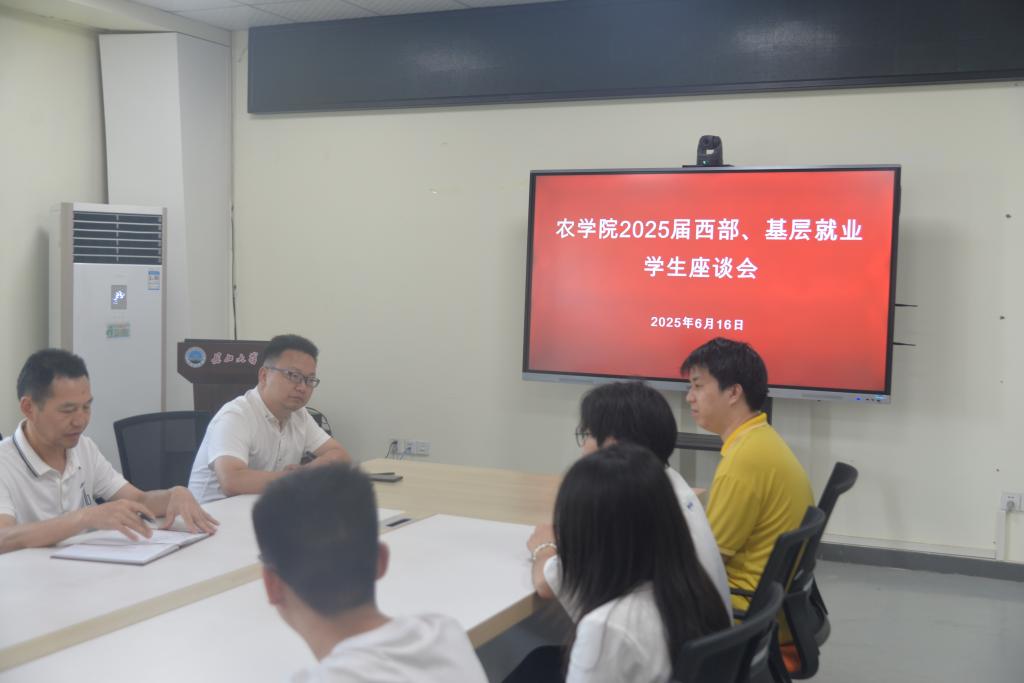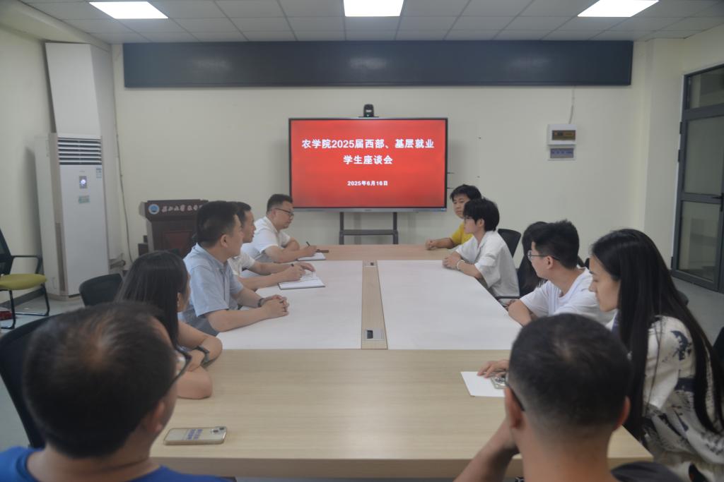 (通讯员 郑怡乐 徐馨悦)为响应国家基层就业战略号召,凝聚青年学子服务 “三农” 的使命担当,6 月 16 日 16:30,77779193永利官网 2025 届西部、基层就业学生座谈会在农科大楼 3071 会议室隆重召开。学院党委书记周锦华、党委副书记尹小华、学工办主任黄承石与即将奔赴西部、基层的毕业生代表们齐聚一堂,共话职业选择,共绘发展蓝图。