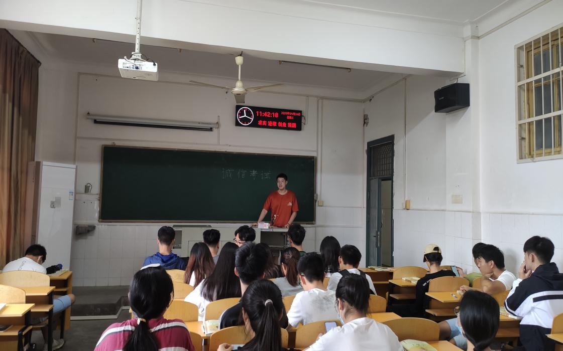 班会上,由班长和学习委员全面细致地讲解了四、六级考试相关规定和纪律要求,着重强调了我校对考试违纪、作弊的认定及处理办法;各年级由年级辅导员牵头,采取线上、线下相结合的方式,开展考风考纪年级教育大会。