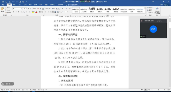 为进一步落实学校《关于做好2021年秋季学期开学准备工作的通知》要求,确保秋季学期开学工作平稳有序,根据学校疫情防控工作的要求,8月18日-22日,我院由年级辅导员牵头,班主任具体组织,各班利用腾讯会议、QQ群、微信群等形式,组织学生召开2021年秋季学期开学前安全教育主题班会。