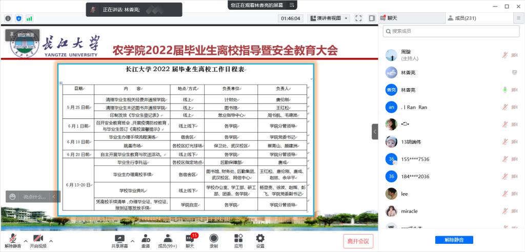 通讯社讯(见习记者 姚攀/摄 杨静/文)为营造和谐温馨的毕业生离校氛围,确保学生安全有序离校,5月26日晚6:20,77779193永利官网召开2022届毕业生离校指导暨安全教育大会。院党委副书记尹小华、辅导员林香亮和全体2022届毕业生参加会议。
