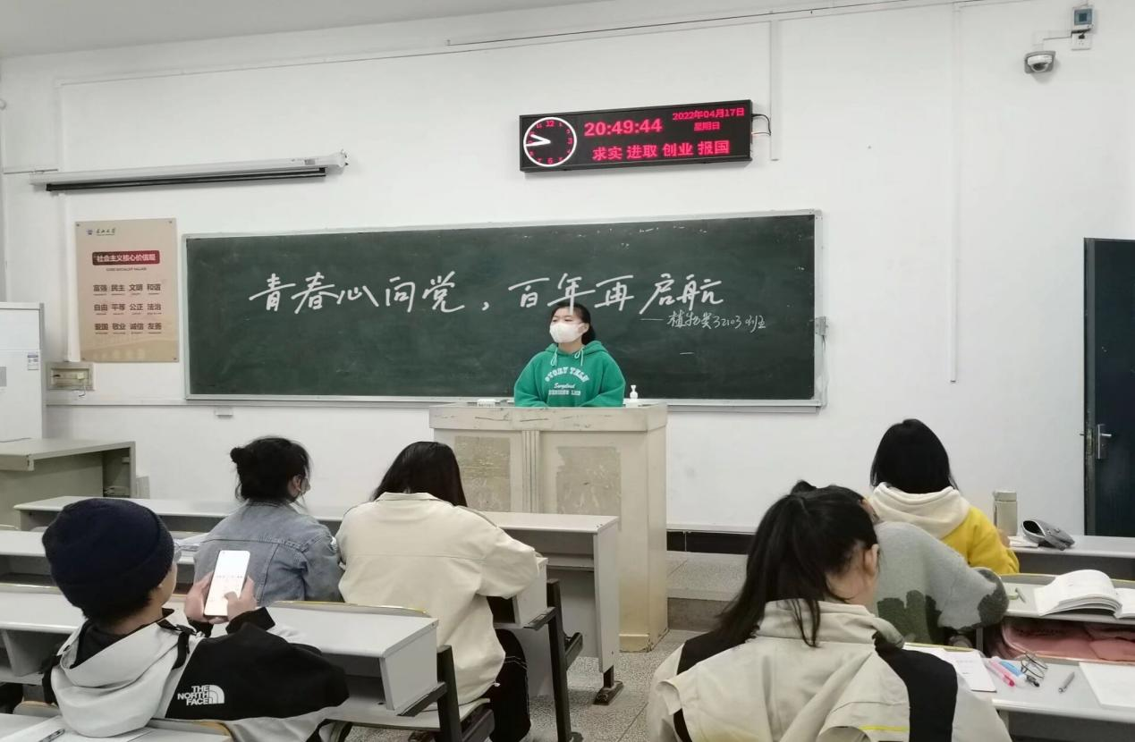 在团会上主持人李炫及各班委引领同学们学习了《习近平总书记给南京大学的留学归国青年学者回信》。习近平总书记希望同志们大力弘扬留学报国的光荣传统,以报效国家、服务人民为自觉追求,在坚持立德树人、推动科技自立自强上再创佳绩,在坚定文化自信、讲好中国故事上争做表率,为全面建设社会主义现代化国家、实现中华民族伟大复兴的中国梦积极贡献智慧和力量。同学们明白了生逢伟大时代是人生之幸,留学归国青年更要心系“国家事”、肩扛“国家责”。