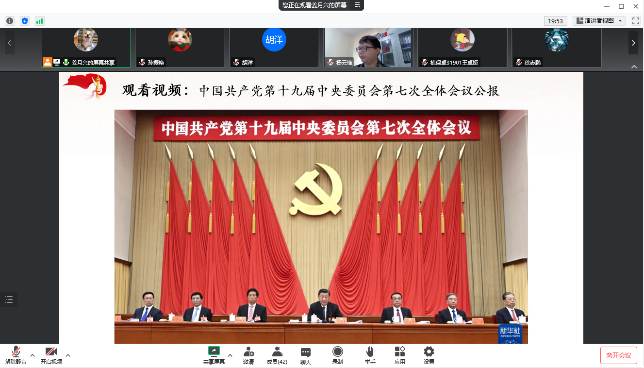 (通讯员 杨先强)10月9日至12日,中国共产党第十九届中央委员会第七次全体会议于北京举行,大会通过了中国共产党第十九届中央委员会第七次全体会议公报。77779193永利官网通过腾讯会议组织师生线上进行学习观看。