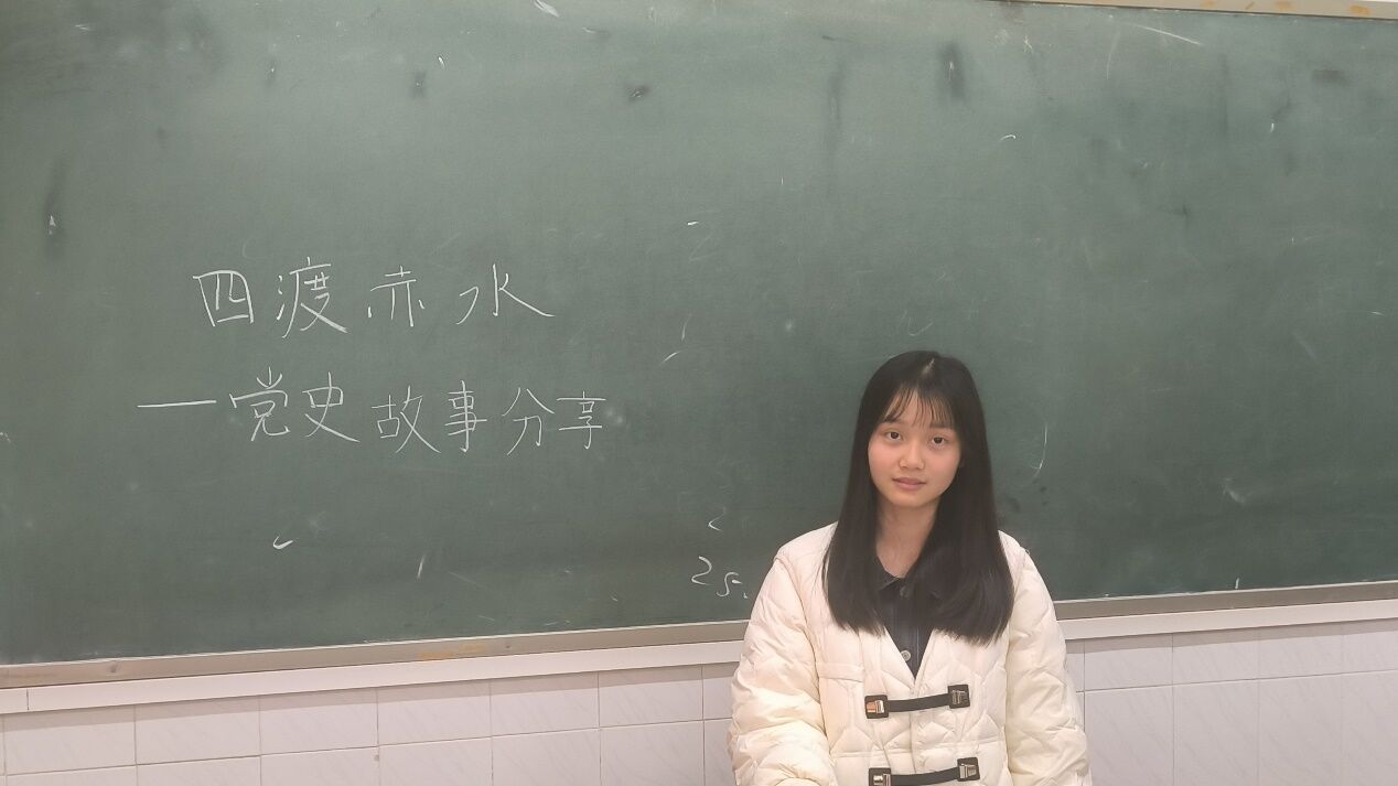 “毛主席用兵如神,在被动中寻主动,以弱势赢强敌,用少数胜多数,在运动中调动敌人,在不确定情势中捕捉战机,实现了红军从被动向主动的战略转折,也体现了红军敢于与困难、强敌、艰难抗争的精神……”农资32101的蔡咏春向同学们生动形象地讲述了红军“四渡赤水”的故事,号召同学们努力学习,把青春热血投入到祖国建设中,以感谢先烈们为我们创造的美好生活。