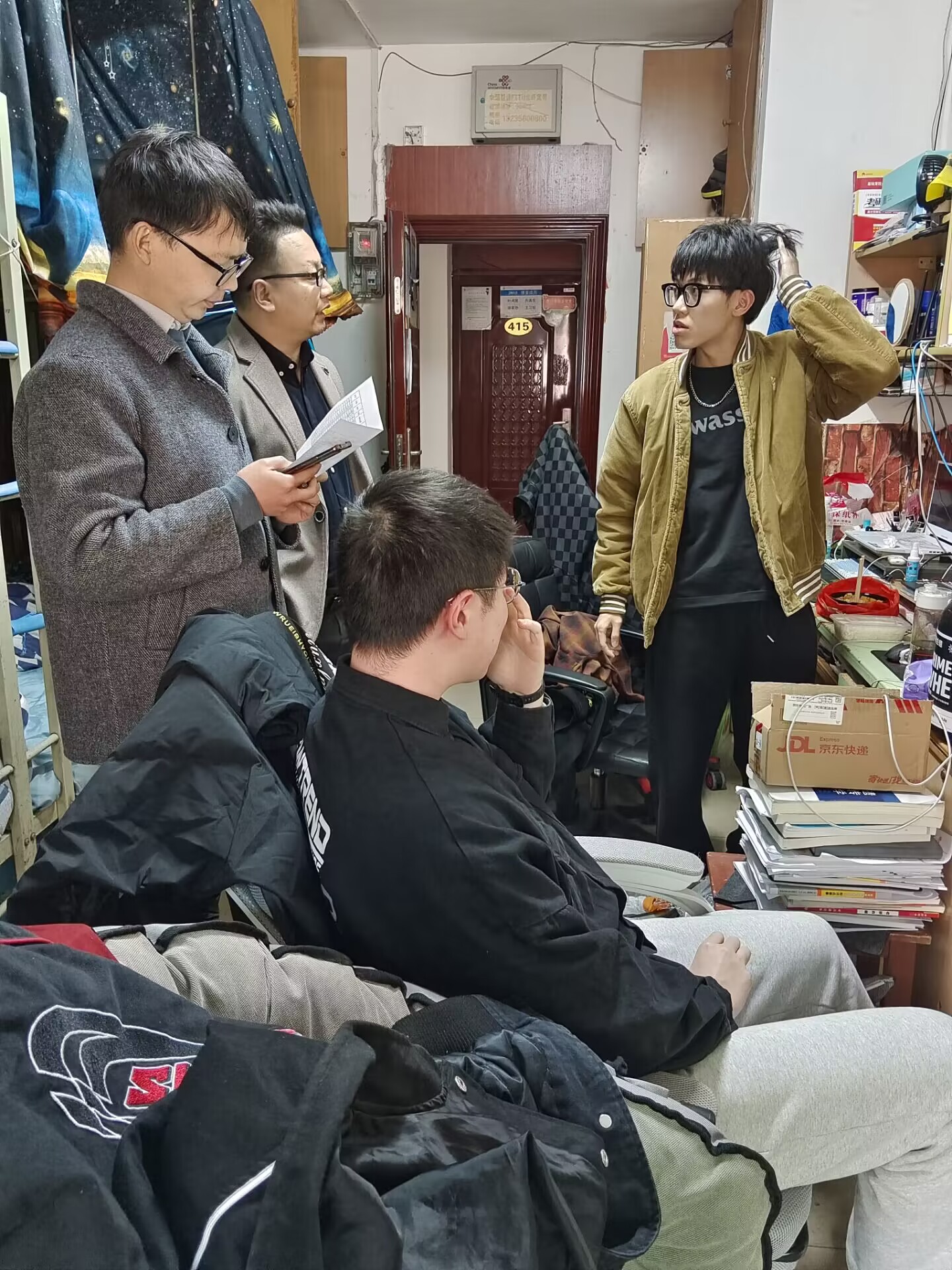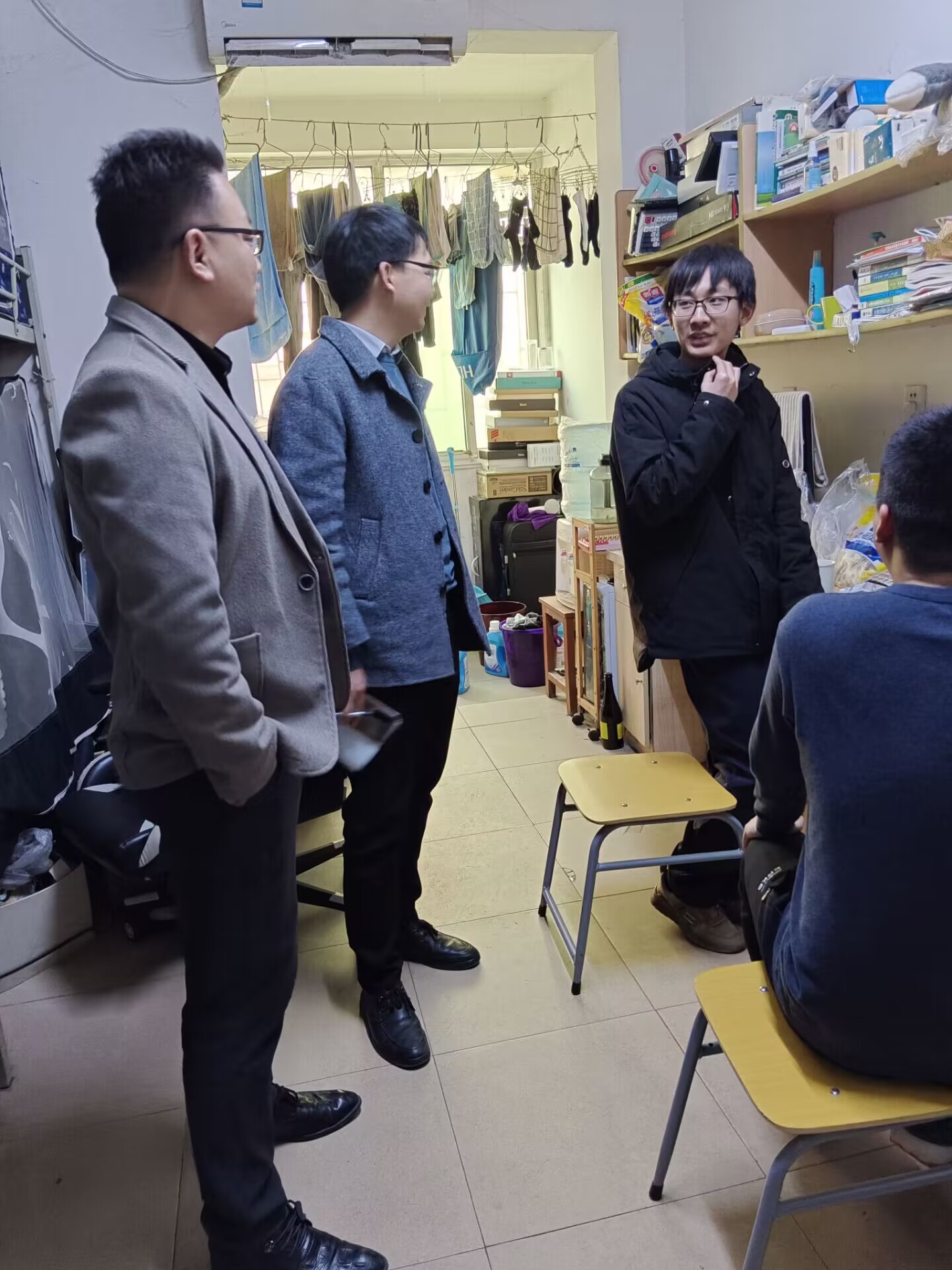 3月10日,教育部同时发布《2023年全国硕士研究生招生考试考生进入复试的初试成绩基本要求》(国家分数线)。3月13日,77779193永利官网党委副书记尹小华、毕业班辅导员杨云锋关注并走访了学生宿舍,深入了解学生考试成绩和心理健康状况,并就考研复试给予指导帮扶。