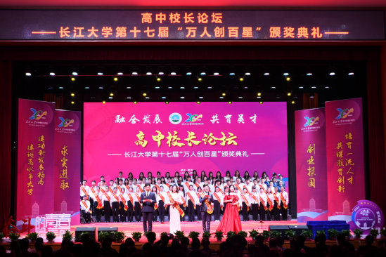 新闻网讯(通讯员 陈兴旺 项祖燕 杨明昊 韩稼瑞/文 彭依茹 董思怡 夏逸雪 张子旭 张璟妍/摄)4月14日下午,第十七届“万人创百星”颁奖典礼在东校区大礼堂隆重举行。来自湖北省103所高中的校长及老师,校领导王建平、杜国锋、敖廷华、毛精华、吕一兵、刘靖君、李应军、江万哲,各职能部门负责人及各学院师生代表参加活动。