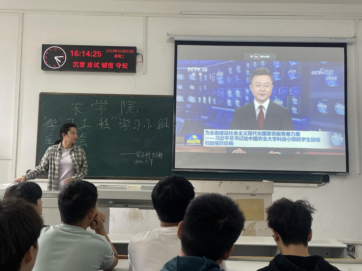 其中农资卓32101班班长围绕“怀抱梦想、脚踏实地”这两个关键词,以习近平总书记的回信为契机,召开“学习习近平总书记给中国农业大学科技小院的学生回信精神”主题班团会。