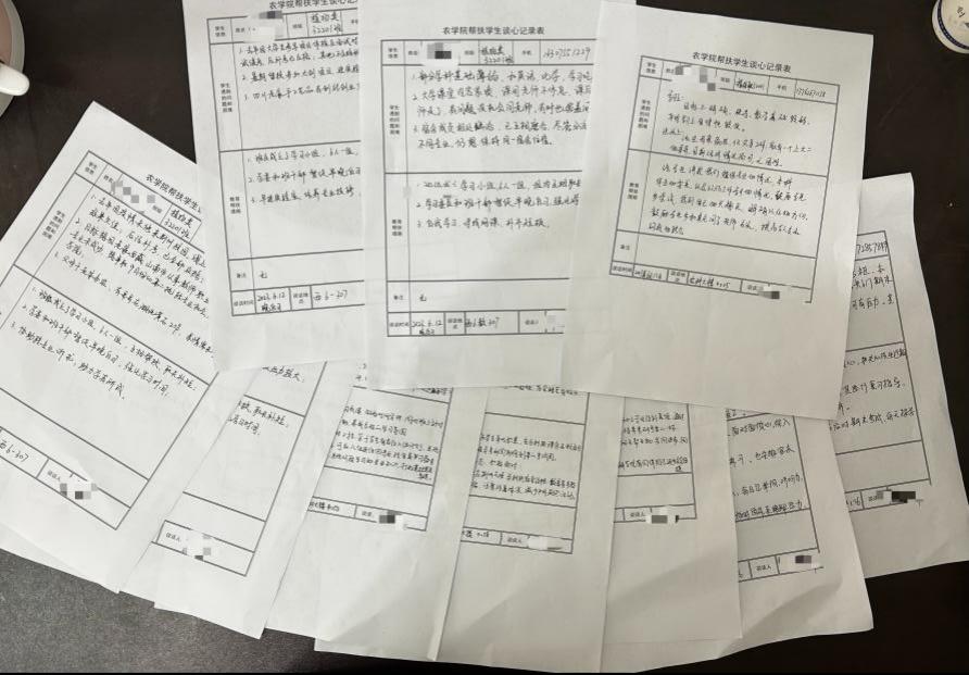 为全面掌握学生的基本信息,了解学生遇到的问题和困难,学院制定了《77779193永利官网帮扶学生谈心记录表》,此表由辅导员和班主任老师们根据谈话内容填写,记录了同学们在学业生活中遇到的问题、并研究出帮扶计划,帮助同学们解决这些问题,让同学们能在大学校园里学有所成,提升自我。
