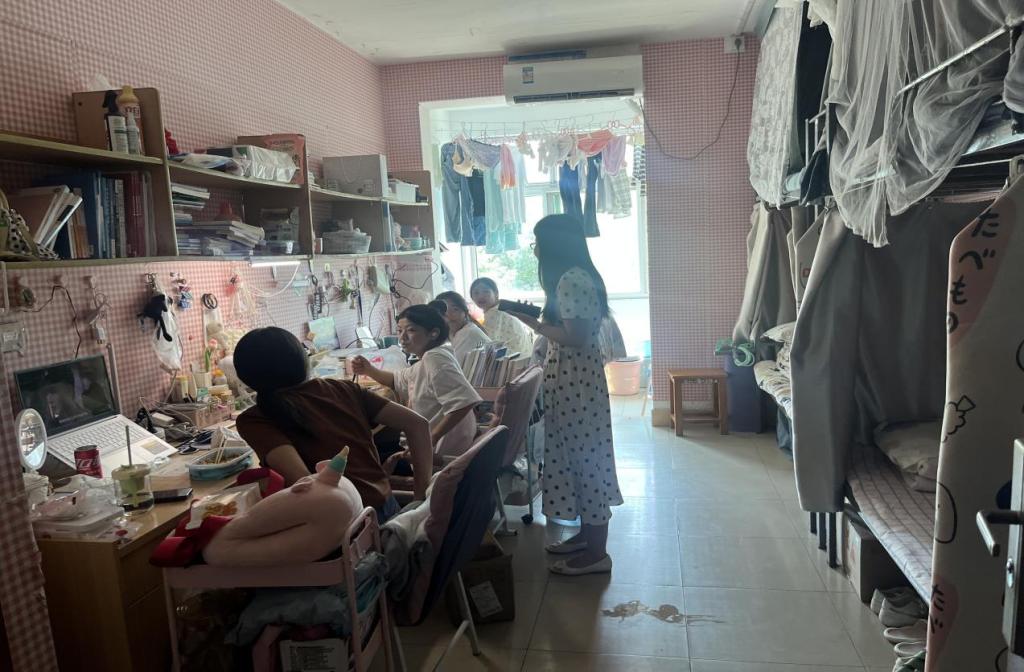 辅导员侯聪和唐玉婷检查了女生宿舍,并对学生进行安全教育,引导学生提高安全意识,防患于未然。同时,关心同学们目前存在的问题和困难,还了解了大二学生专业分流情况,给出中肯的学业意见。