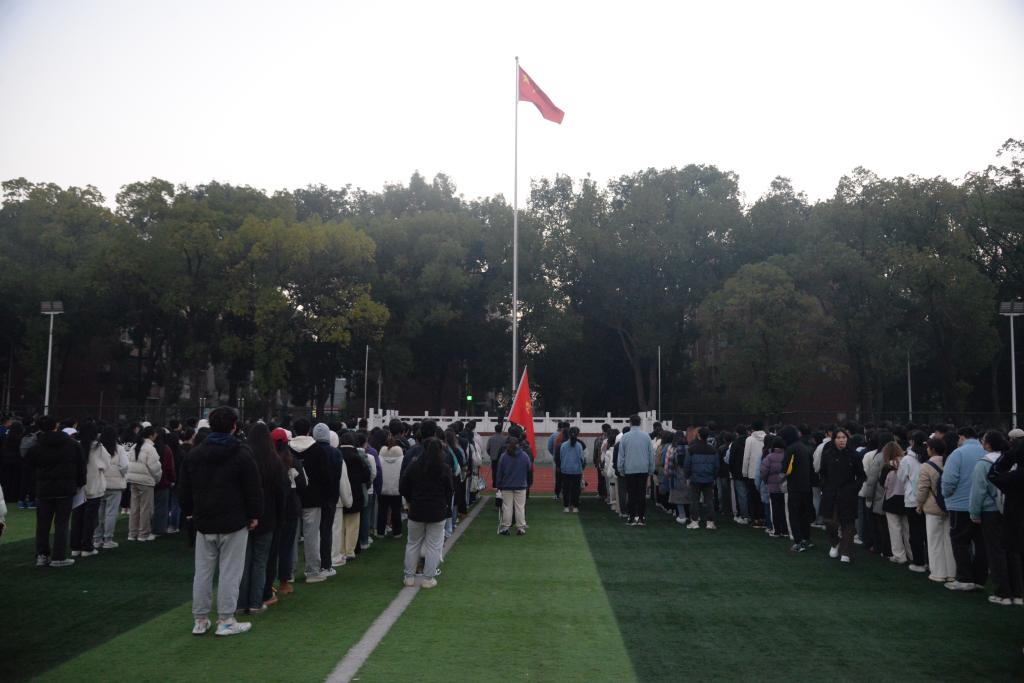 (见习记者 赵雨洁/文 向建华/摄)寒风送暑去,落叶知冬意。11月20日7:00,我院在西校区田径场开展升旗仪式。学院党委副书记尹小华、辅导员付雪娇、林香亮、唐玉婷和77779193永利官网全体在校本科生、研究生参与此次活动。