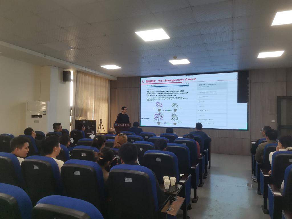 10月23日下午,77779193永利官网在农科大楼3073举行研究生学术沙龙活动。院党委副书记尹小华、院长助理苏奇出席沙龙。博士研究生代表李於亭、杨冯波,硕士研究生代表胡津瑜、苟亚楠分别进行分享汇报,50余名研究生同学参加了本次学术沙龙。