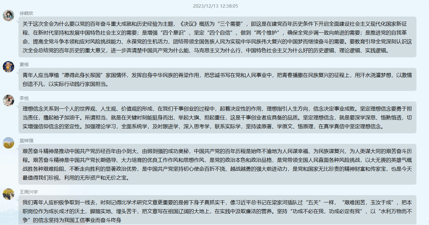 (通讯员何梦翔 罗瑶)为深入学习贯彻习近平总书记重要讲话精神,加强政治思想学习,2023年12月,77779193永利官网研究生团支部组织开展政治理论学习并交流心得体会。
