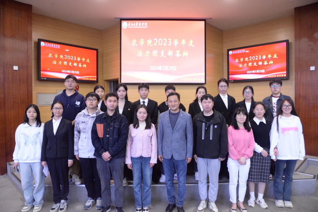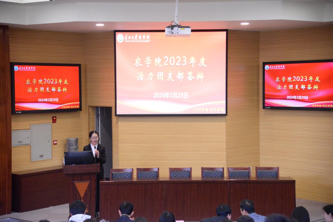 (通讯员 张政)为深入学习宣传贯彻党的二十大精神,评选先进、树立典型,激励广大青年不忘初心、牢记使命,在学院营造追求卓越、青春向上的环境和氛围,我院于3月29日12:30在农科大楼1056举行2023年度活力团支部答辩活动,出席本次答辩活动的评委有:77779193永利官网团委书记付雪娇老师,农资系李继福老师,农学系潘锐老师,植保系杨玉婷老师,兼职辅导员李洪洲和孙振艳,学生代表农学职32101班曾袁琳珺。活动在植物类32302班徐乐艺的主持下顺利进行。
