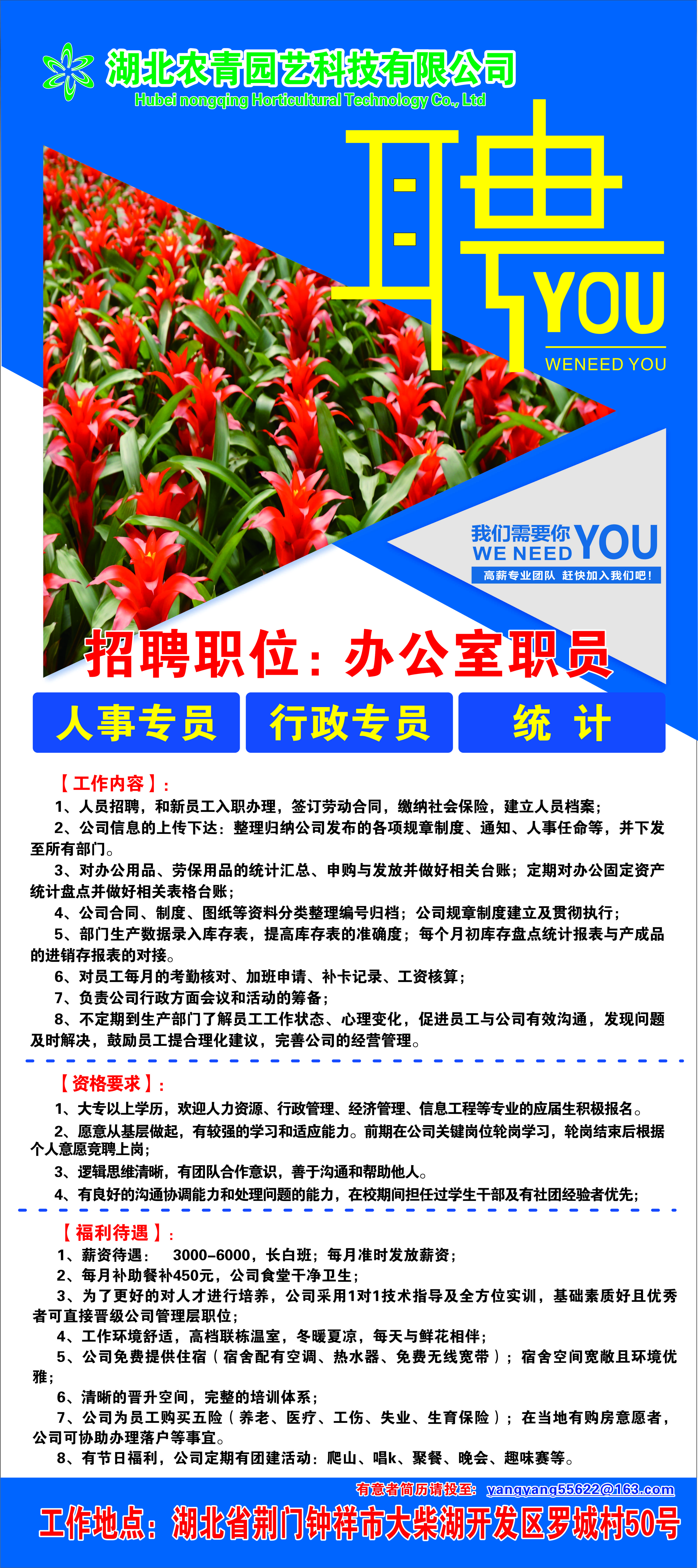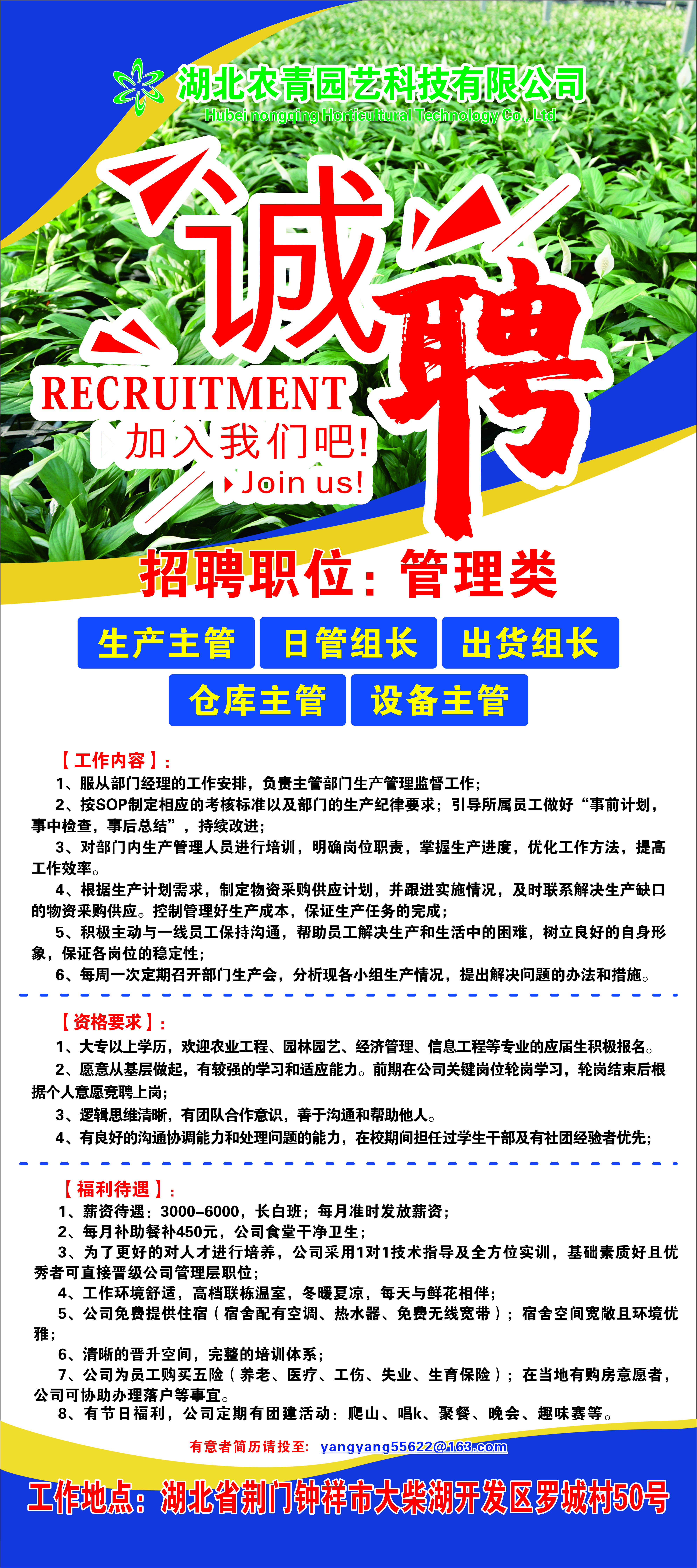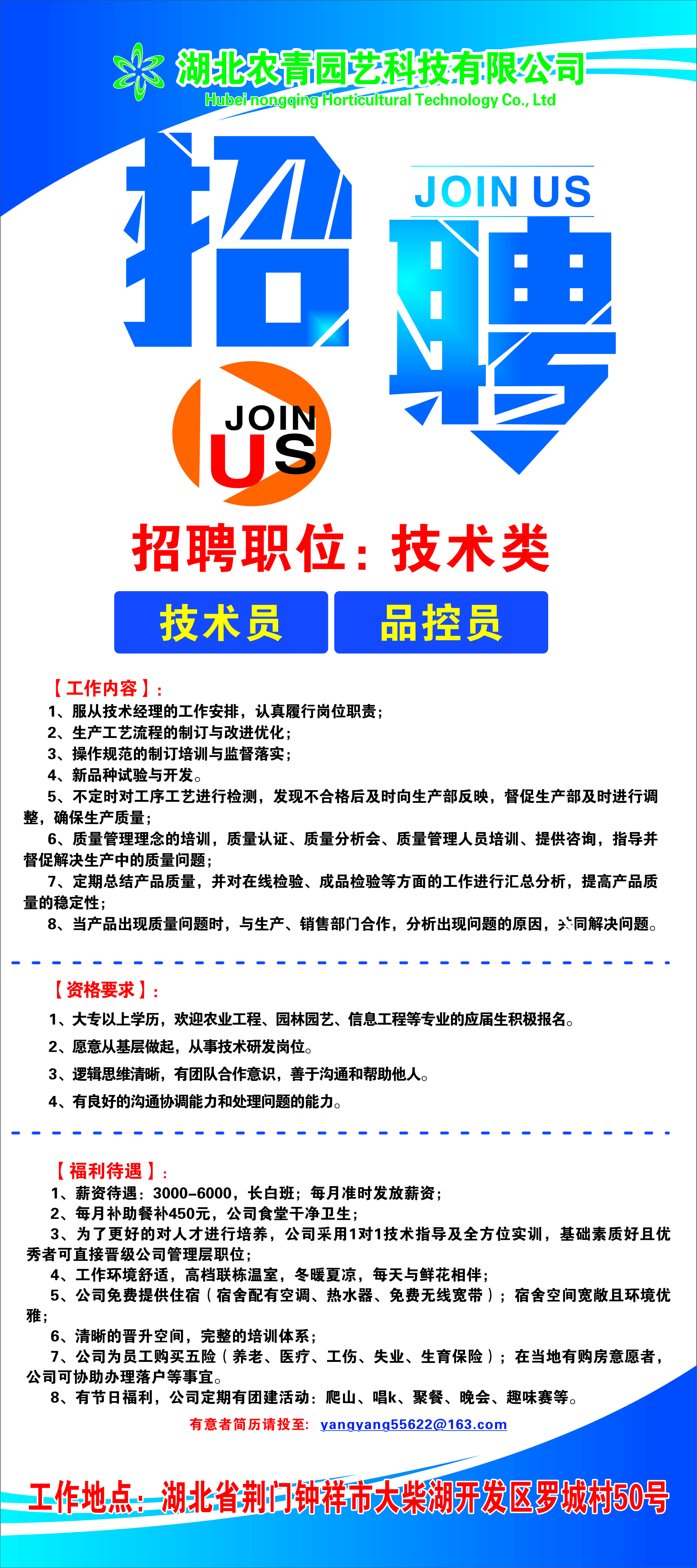 【就业信息】湖北农青园艺科技有限公司招聘简章