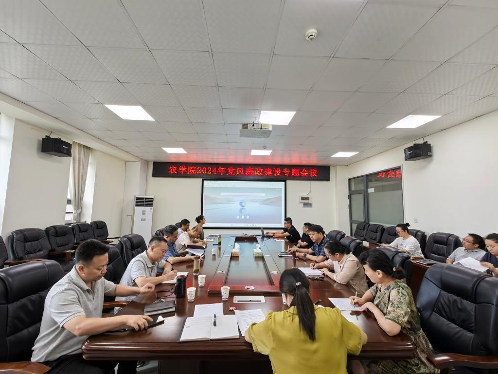 6月6日下午,学院2024年上半年党风廉政专题会议在农科大楼3064会议室召开,会议由党委书记姜清奎主持,学院领导班子成员、学院党委委员、各党支部书记及各科室负责人参会。