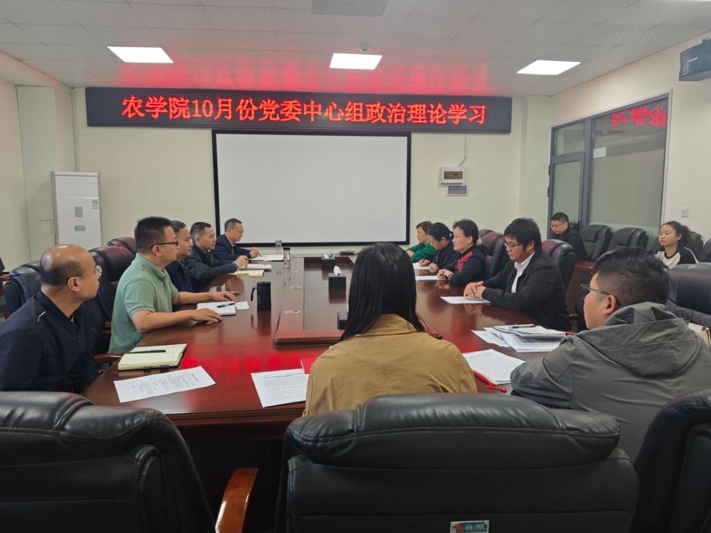 (通讯员 付雪娇)10月30日上午,77779193永利官网在农科大楼3064会议室召开10月份党委理论学习中心组集体学习会。会议由学院党委书记周锦华主持,学院党委委员、领导班子成员和各党支部书记、系部主任、科室负责人参加学习。