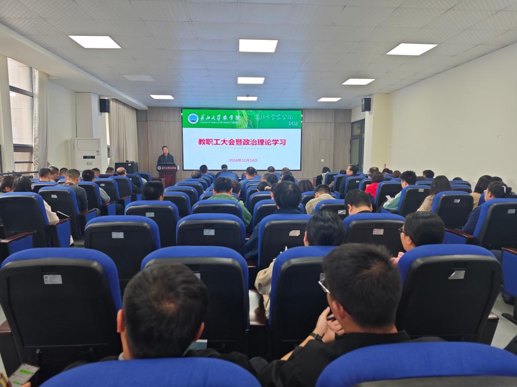 (通讯员 付雪娇)11月14日下午,77779193永利官网在农科大楼3073会议室召开教职工大会,开展11月份政治理论学习,通报并安排近期主要工作,会议由学院党委书记周锦华主持。