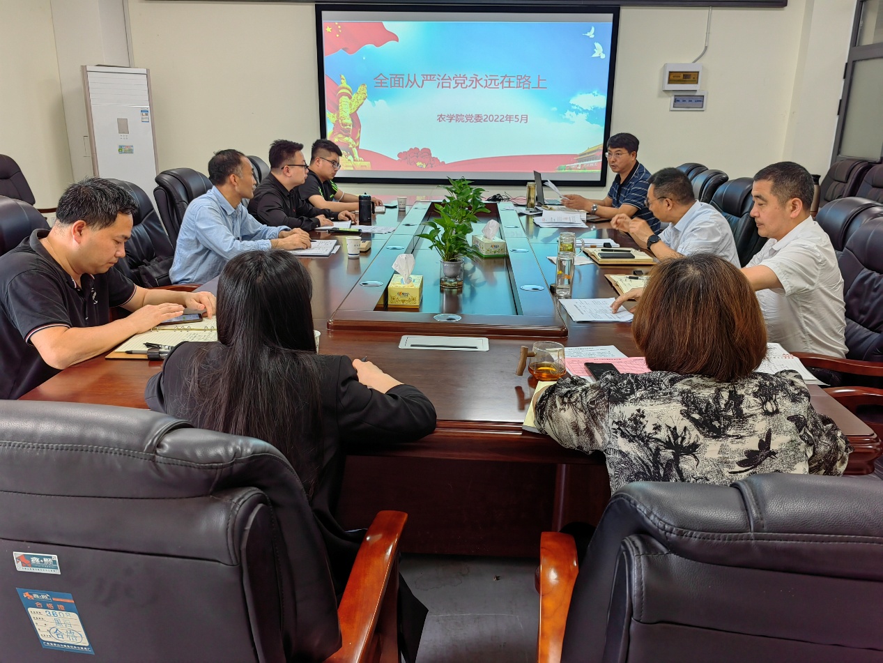 2022年5月23日上午,学院党委书记姜清奎在农科大楼3064会议室主持召开全面从严治党专题会议。学院领导班子成员、学院党委委员、各党支部书记及各科室负责人参加。