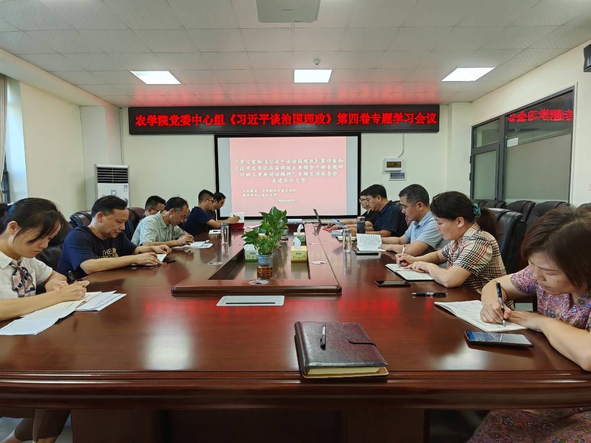 2022年10月3日上午,学院党委书记姜清奎在农科大楼3064会议室主持召开党委理论学习中心组《习近平谈治国理政》第四卷专题学习会议,学院领导班子成员、学院党委委员、各党支部书记及各科室负责人参加了学习会。