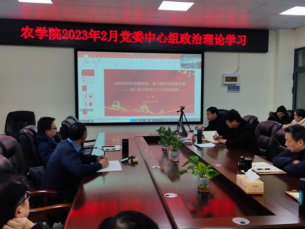 2023年2月23日下午,学院党委书记姜清奎在农科大楼3064会议室主持召开2月份党委理论学习中心组学习会议并邀请韦鸿教授作党的二十大精神辅导报告。