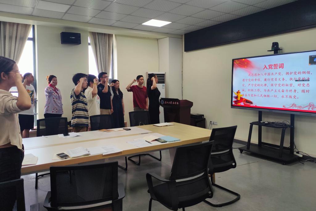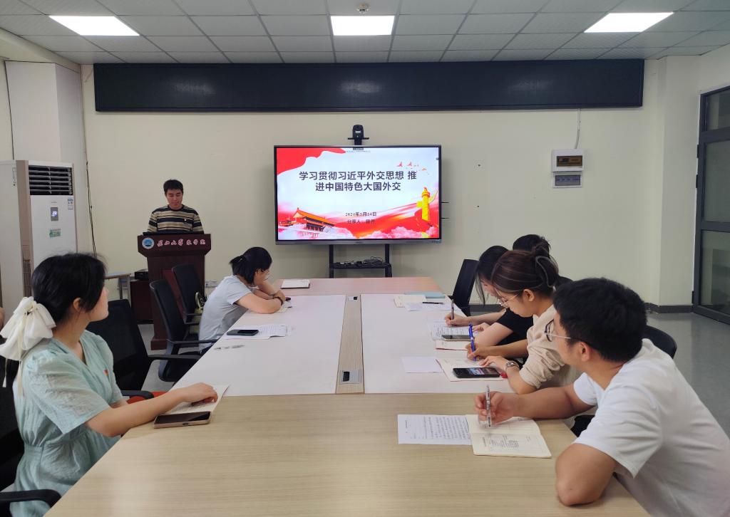 会议伊始,韩硕同志带领全体党员重温入党誓词,并对本月党费交纳情况进行说明,全体党员诵读《中国共产党章程<修正案>》第二章相关内容。随后进入党课(微党课)与集体学习党的创新理论环节,由田尧同志带领党课学习《贯彻习近平外交思想 推进中国特色大国外交》;余婷煜同志带领学习《习近平总书记关于党的纪律建设的重要论述》、《省纪委监委通报5起群众身边不正之风和腐败问题典型案例》,汤娟同志带领学习《省委常委会党纪学习教育读书班开班式举行》、《市委常委会党纪学习教育读书班开班式举行》、《学校举办党纪学习教育专题辅导报告暨校党委理论学习中心组(扩大)学习会》。