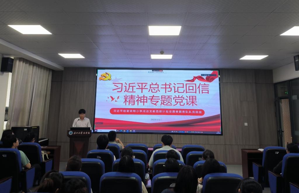 会上,史庆潇同志带领全体党员全文学习了习近平总书记给谢依特小学戍边支教西部计划志愿者服务队队员的回信。通过介绍教育强国建设等时代背景,他深入分析了戍边支教西部计划的战略意义,指出这不仅推动了当地教育事业发展,还在民族团结进步、兴边富民和稳边固边中发挥了积极作用。对此,他强调作为新时代中国青年应坚定理想信念,厚植家国情怀,练就过硬本领,发扬奋斗精神,到祖国和人民最需要的地方发光发热,为中国式现代化建设贡献青春力量。与会党员们认真聆听,深刻领会到习近平总书记对青年一代的关怀与厚望,纷纷表示要将回信精神牢记于心,落实于行。