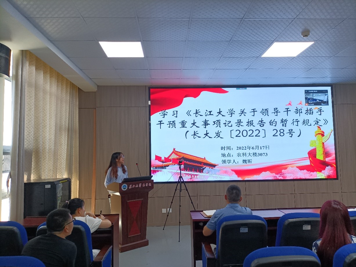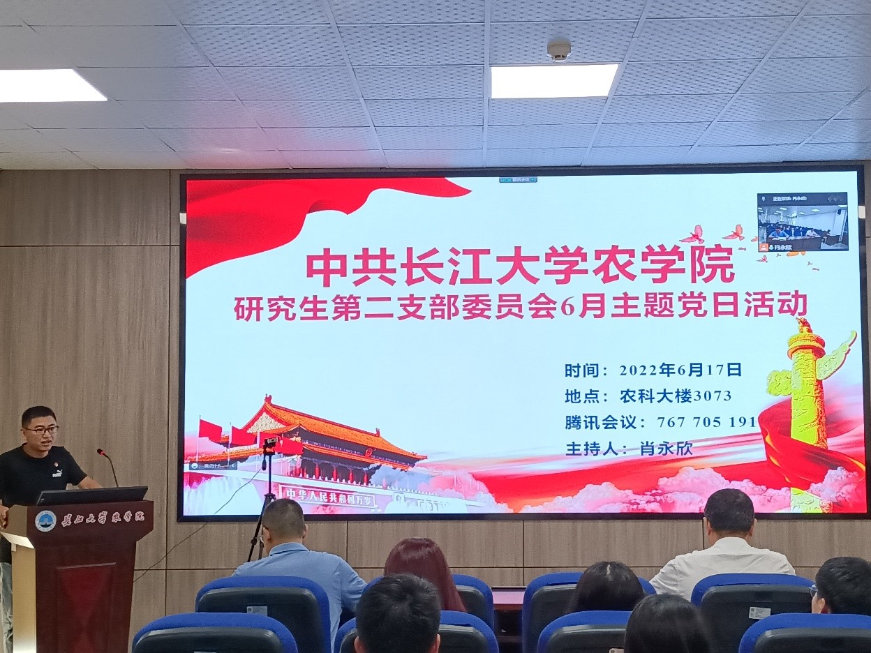 通讯社讯(通讯员 曹佩娜)6月17日下午3点,我院研究生第二党支部在农科大楼3073开展了6月份主题党日活动,活动结合腾讯会议的方式开展。77779193永利官网院长李俊凯、副院长邵四海、支部书记侯聪以及全体党员参与活动,活动由支部副书记肖永欣主持。
