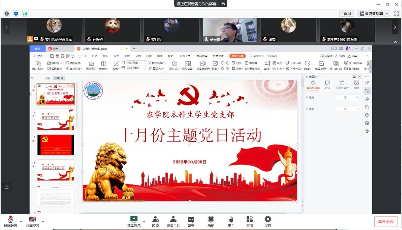 (通讯员 亢凯)10月20日中午12:20,我院本科生学生党支部通过腾讯会议开展十月主题党日活动,支部党员均参加本次主题党日活动,本次活动由支部党员姜月兴同志主持。