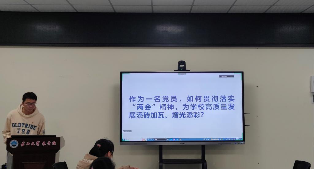全体党员以“作为一名党员,如何贯彻落实两会精神,为学校高质量发展添砖加瓦?”为主题展开研讨。马东东同志认为刚刚胜利闭幕的全国两会意义重大,是新的历史节点和新的奋斗起点。作为新时代的党员要敢担当有作为,要聚焦两会精神,切实把行动与思想结合起来。我们作为党员,应该发挥模范带头作用,从自身做起,从身边小事做起,为我校高质量发展贡献自己的一份力量。