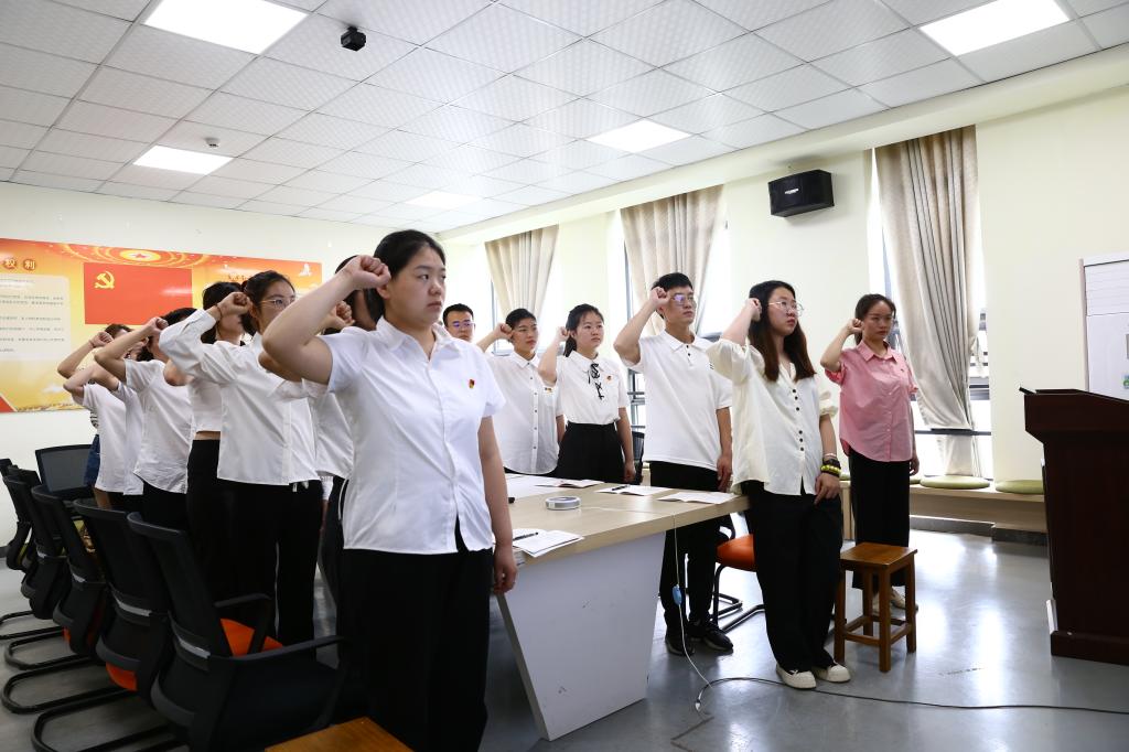 活动在支部书记付雪娇介绍活动的背景中拉开帷幕,大家佩戴党徽,热情饱满,积极参与。活动包括“重温入党誓词、交纳党费、诵读党章、讲授党课、学回信原文、交流学习心得”内容。“我志愿加入中国共产党,拥护党的纲领……”、“凡是有正式党员三人以上的,都应当成立党的基层组织”,重温的一句句入党誓词铿锵有力,诵读的一声声集体党章深入人心。