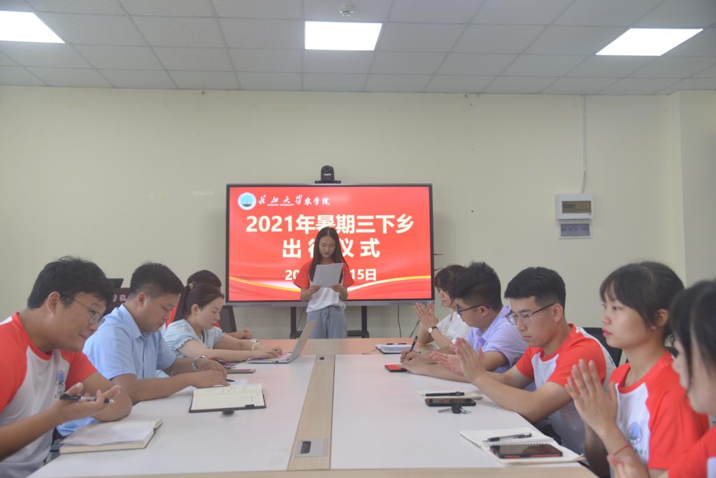 通讯社讯(学生记者 罗旖柔)7月15日,77779193永利官网乡村振兴实践队全体成员在农科大楼3071会议室召开2021年暑期“三下乡”出征仪式暨青年红色筑梦之旅出征仪式,党委副书记谭亮魁、分团委书记侯聪、辅导员付雪娇、林香亮参加此次出征仪式。