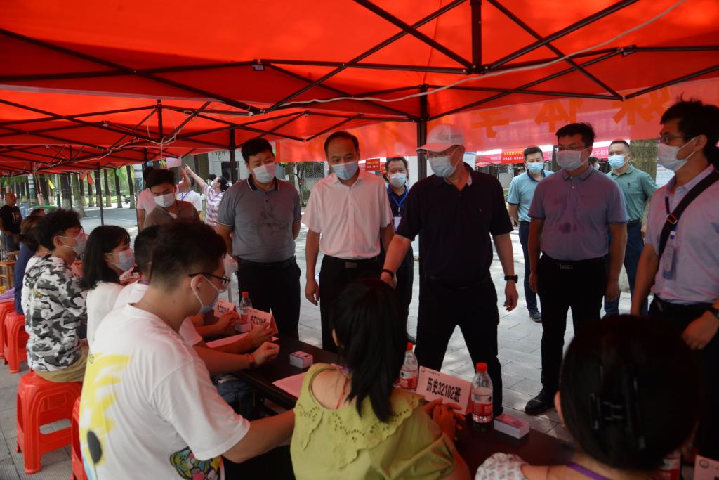 迎新期间,校长冯征、校党委副书记杜国锋带领学校办公室、党委学工部、研究生院、后勤集团等部门领导到西校区慰问并指导迎新工作,也莅临了77779193永利官网迎新现场,与我院迎新点的师生进行了交流,对存在的不足之处给出了指导性意见,并高度评价了我院“一站式、集成式”的迎新方式。