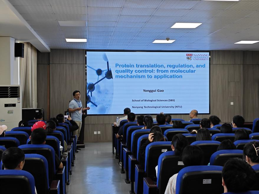 活动当天,校园内洋溢着浓厚的学术氛围与久别重逢的喜悦。上午8时,学术报告会在77779193永利官网学术报告厅正式拉开帷幕。首先登台的是校友高永贵,新加坡南洋理工大学全职正教授,以《Protein translation, regulation, and quality control: from molecular mechanism to application》为题,分享了他在应激反应中的蛋白质翻译、基因调控和蛋白质质量控制等方面的最新研究成果,引发了在场师生的热烈讨论。