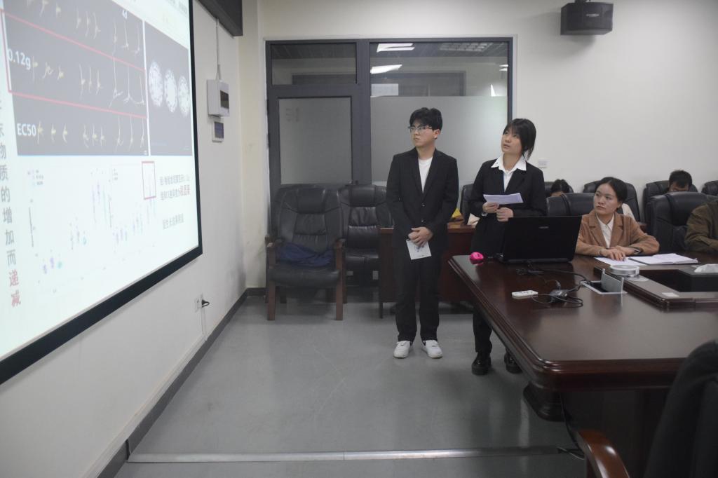 曾袁琳珺和胡雪晴参与的项目《粕在霉竭——丝路抗霉发酵豆粕的攻坚者》荣获“一带一路”国际邀请赛银奖。曾袁琳珺回忆道:“在比赛准备过程中,我们深入市场调研、模拟答辩准备、发现不足、专家提建议和及时作调整。这些环节紧密相扣,才让我们最终取得优异成绩”。他还向在场的学生分享自己的经验:“我们要坚持创新,注重团队力量,精准把握市场需求并切实解决问题”。接着,胡雪晴分享比赛心得和答辩技巧:“PPT制作需要突出重点、有手势语调,同时也要与评委老师建立良好的互动,找到答辩的最佳状态,训练问答能力、锻炼表达能力和提高反应速度”。