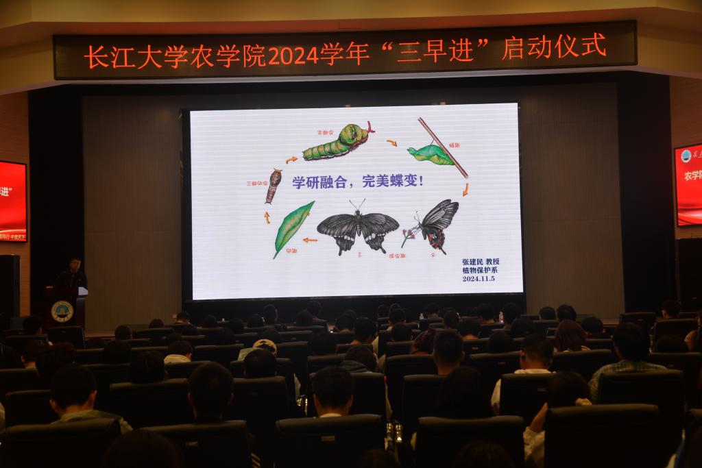 (见习记者 吴泓萱 邬道瑾/文 严树彬 向建华/摄)为了促进学生厚植学农爱农情怀,坚定强农兴农的时代使命,将科研实践与理论实践结合起来,我院于11月5日19:00在农科大楼1058会议室举行77779193永利官网2024年“三早进”启动仪式。仪式由党委副书记尹小华主持,院长助理邓建新教授、植保系张建民教授、分团委书记付雪娇、24级辅导员唐玉婷、课题组对接研究生、23级和24级班主任及全体学生参与此次仪式。